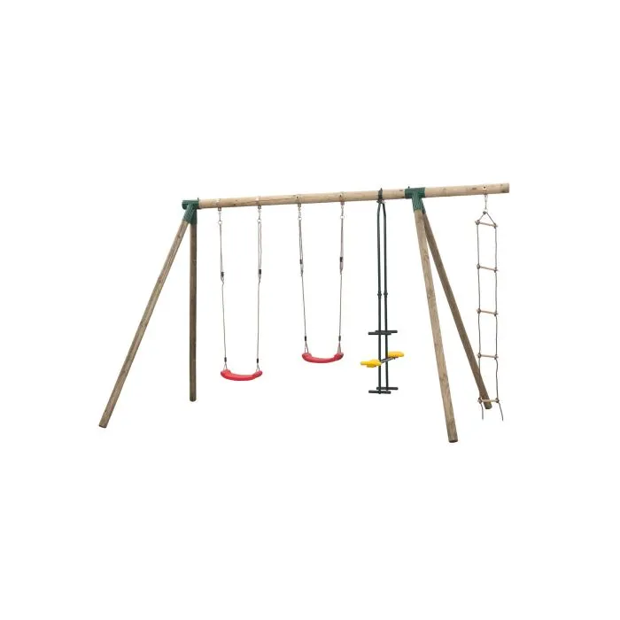 Columpio de madera con combinación de parque infantil aprobado según TÜV / CE. Se suministra completo con paquete de madera, columpios y escalera de cuerda. Certificado TÜV para uso privado.Product attributes